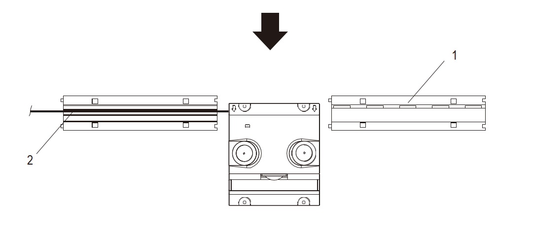 1.Place two rubber deceleration strip on both sides of scanner. The end of deceleration strip should be aligned at the wire holes on the both sides of scanner.