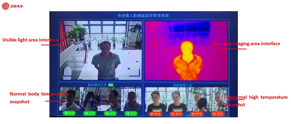 La puerta de seguridad con detección de metales y medición de temperatura por imágenes térmicas, desarrollada independientemente por Shenzhen Zhongan Gaoke Electronics Co., Ltd., integra tecnología de medición de temperatura sin detección por imágenes térmicas infrarrojas y detección de metales. Puede realizar simultáneamente la medición de temperatura sin detección y la detección de metales sin afectarse mutuamente. La medición de temperatura por imágenes térmicas y la detección de metales adoptan una pantalla dual independiente, la cámara termográfica adopta una cámara binocular con IA, un sensor de temperatura termográfico de alta precisión integrado, un algoritmo inteligente de captura facial incorporado, procesamiento de imágenes ISP y otras tecnologías en un solo producto inteligente con IA. Tiene potentes funciones como detección de rostros, detección de temperatura corporal y captura de rostros. Puede capturar con precisión la temperatura corporal y las imágenes de los rostros de las personas que pasan por el campo de visión de la cámara, acompañadas de avisos de alarma por voz, que pueden ayudar eficazmente a los usuarios a monitorear el estado de la temperatura corporal de las personas que entran y salen, y ayudar a la toma de temperatura del personal. El diseño de toda la parte de medición de temperatura es inteligente y conveniente, lo que puede medir rápidamente la temperatura sin afectar el paso normal de la persona examinada; La pantalla del módulo de detección de metales muestra claramente el estado de detección de metales y la cantidad de personas que pasan, acompañado de alarmas de sonido y luz, que pueden controlar eficazmente la inspección de mercancías peligrosas como cuchillos y armas.